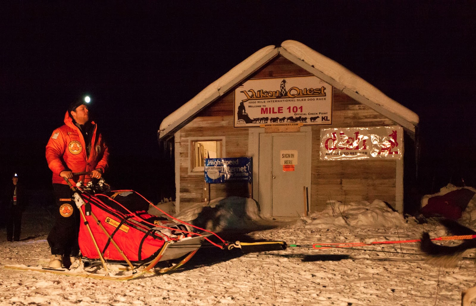 Hugh Neff was the first musher to check in at the Mile 101, it was exciting for Piia to do the checker job. Amazing thing to remember! After Hugh Allen Moore was the next one to come in, and after a while they were both gone. So it was fast first action! Julien is the communication manager, which means managing the network and updating news from the checkpoint to the world, so it was a busy start for him as well, and we can only assume it will continue to be that way the whole race. Being communication manager is a very exciting job for him, and much liked!